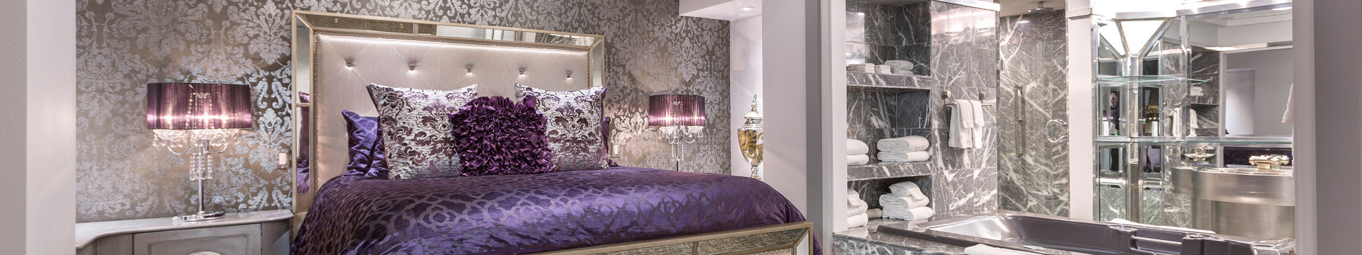 The bed frame boasts a hollywood inspired black leather appeal that s the focus point of the luxurious signature room.